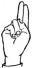 На ћирилици написано ЕВГЕНИЈЕ ГАВРИЛОВИЋ састоји се из 18 слова [?]. Исписано ћириличном једноручном азбуком за глувонеме: